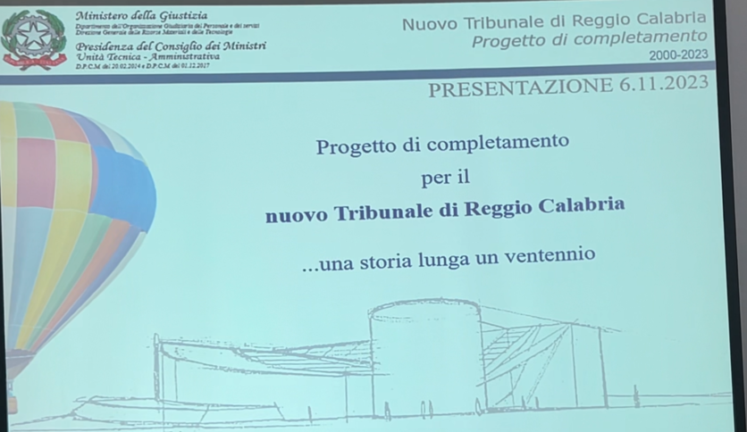 “Una storia ventennale” su cui si potrebbe vedere presto la luce dunque. Almeno questa è la speranza e il sentimento che ha caratterizzato la mattinata presso la Corte d’Appello reggina. Nel corso dell’incontro il direttore Orlando, che ha ripercorso la lunga storia dell’opera, ha parlato di «una giornata importantissima per la giustizia reggina e la città di Reggio Calabria», mentre la presidente del Tribunale Olga Tarzia ha parlato di «un grande sforzo da parte del Ministero per la risoluzione della questione, nella certezza che questa opera sarà presto fruibile alla cittadinanza e a tutti noi».