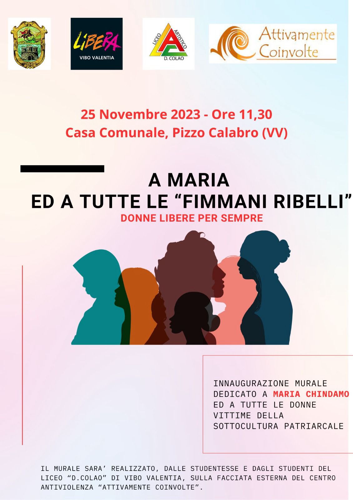 «Sabato 25 alle ore 11.30 – si legge in una nota di Libera – ci ritroveremo a Pizzo, di fronte lo sportello antiviolenza di Attivamente Coinvolte, per inaugurare un murale dedicato a Maria Chindamo ed a tutte le “fimmani ribelli” che con coraggio si oppongono a un sistema patriarcale e mafioso. Lo faremo nella giornata internazionale contro la violenza sulle donne. Da inizio anno sono 106 le donne uccise in Italia, più della metà per opera del partner o dell’ex. Numeri che preoccupano ancora di più se sommati a tutte le violenze fisiche e psicologiche subite ogni giorno. Ma, soprattutto, dietro i numeri ci sono storie, sentimenti, volti. Abbiamo scelto il volto di Maria perché è una donna della nostra terra, un’imprenditrice libera e coraggiosa. È stata uccisa perché la libertà di una donna non è tollerata in un sistema pervaso da una mentalità patriarcale e ‘ndranghetista. È stata uccisa perché per loro una donna non è libera di amare e di vivere. Maria è una delle tante fimmani ribelli calabresi. Molte donne che si sono ribellate oggi vivono in sicurezza e circondate dai propri cari. Tante altre ancora subiscono violenza quotidianamente. Per questo è fondamentale la presenza di sportelli antiviolenza come quello di Attivamente Coinvolte, luoghi sicuri in cui una donna può trovare aiuto e rifugio».