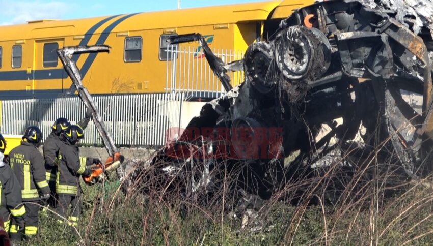 CORIGLIANO ROSSANO «Non abbiamo visto bene come è accaduto dal principio, abbiamo però sentito il boato, poi abbiamo visto il fuoco». È il racconto di una donna che, nella tarda serata di ieri, ha assistito al dramma avvenuto a Thurio, a Corigliano Rossano. Un incidente ferroviario che è costato la vita a due persone. Un camion, guidato da Hannaoui Said, nato in Marocco nel 1999 e residente a San Valentino Torio, è stato travolto dal treno in transito, composto unicamente dalla automotrice Diesel ALn 663.1188 che effettuava il Regionale 5677 da Sibari a Catanzaro Lido. A bordo una decina di passeggeri, rimasti e feriti, e la capotreno Maria Pansini di Catanzaro. La donna di 61 anni è morta sul colpo, come il conducente del camion.