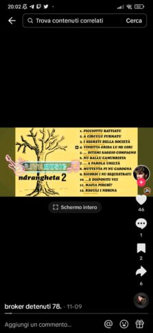 Il profilo contiene canzoni che inneggiano alla mala: da “Reguli i ndrina” a “Picciottu battiatu”, ma anche “Circulu furmatu” e “A parola umiltà”, tutti titoli che rimandano a espressioni utilizzate nel gergo ‘ndranghetista. Molti i richiami a quelle che, come emerso da diverse inchieste passate, sarebbero formule legate ai riti della criminalità organizzata calabrese. Non mancano anche i simboli religiosi: la Madonna di Polsi e San Michele Arcangelo, due figure storicamente di riferimento della criminalità organizzata calabrese.
