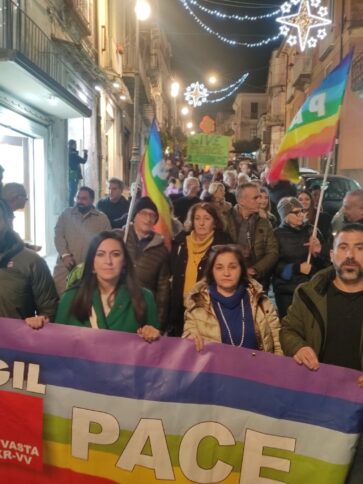 VIBO VALENTIA La Cgil Area Vasta Catanzaro-Crotone-Vibo tra i promotori della costituzione di un “Presidio Permanente Per La Pace”, in prima fila nell’adesione alla prima manifestazione che si è svolta ieri pomeriggio nella città di Vibo Valentia, sfilando nel corteo silenzioso partito da piazza San Leoluca – presenti sindacati, cittadini associazioni, fondazioni e partiti politici – per chiedere: il cessate il fuoco a gaza, in ucraina ed in ogni altro conflitto; immediati interventi umanitari; la liberazione immediata di prigionieri, ostaggi, deportati; giustizia e pace in Israele-Palestina: due popoli e due stati; l’attivazione di un processo di disarmo globale; il riconoscimento all’Onu della sua insostituibile funzione diplomatica e di pace. La Cgil Area Vasta è tra le associazioni vibonesi che hanno promosso questa mobilitazione nel nome di un impegno quotidiano “a custodire e coltivare principi, valori e pratiche di solidarietà, inclusione, difesa dei beni comuni, sono a denunciare l’orrore e a proclamare pubblicamente lo sdegno per le carneficine che si consumano quotidianamente in ogni angolo del mondo ed a mobilitarsi, in modo permanente, per chiedere con forza” “Una voce per la pace”, quella che ha voluto portare la Cgil Area vasta “anche da questo piccolo territorio che sia un presidio permanente anche per le future generazioni. Speriamo – ha detto Nadia Fortuna, della segreteria confederale – di essere sempre più numerosi perché la pace ha i colori dell’arcobaleno e tutti dobbiamo farne parte”.