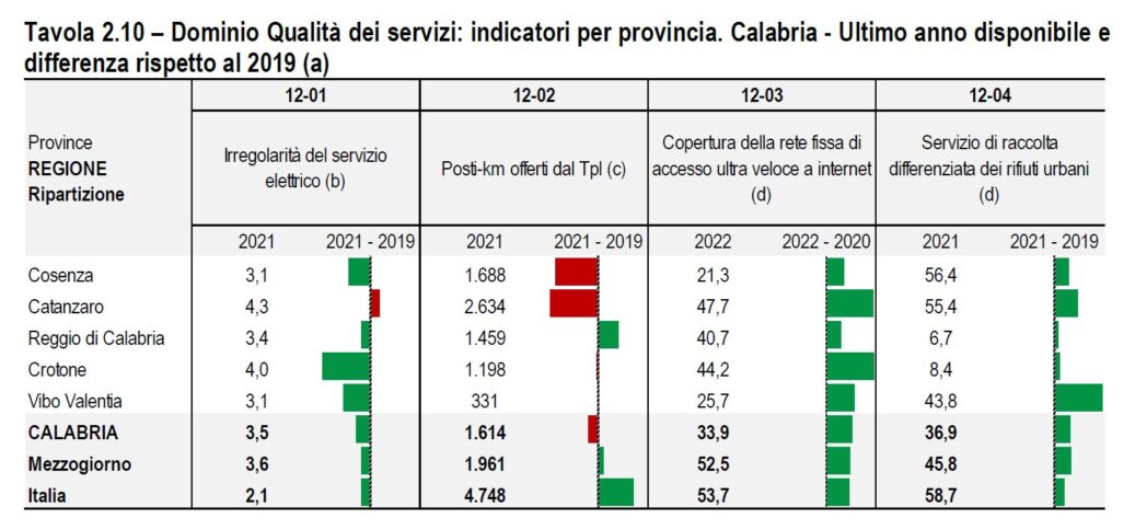 Un indicatore del livello di democrazia che, incrociando i dati di alcuni osservatori, al momento sembra decisamente lontano dal centrare l’obiettivo. Soprattutto per la Calabria dove per infrastrutture pubbliche e private la regione è esempio dei ritardi accumulati dall’Italia. Ed in materia di formazione del capitale umano sconta rilevanti divari non solo digitali.