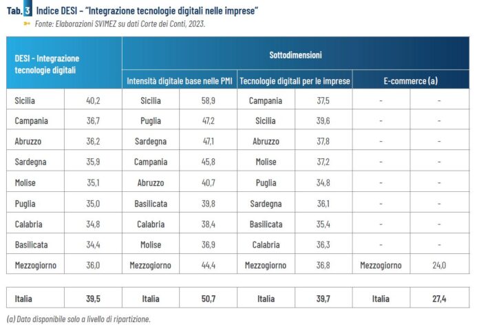 Scendendo nel dettaglio, per intensità digitale di base nelle Pmi, la regione ottiene dal Desi 38,4 punti: in Italia la media è di 50,7 mentre per il Mezzogiorno è pari a 44,4. Un dato che pone la Calabria al penultimo posto, meno di un punto rispetto alla Molise (36,9).