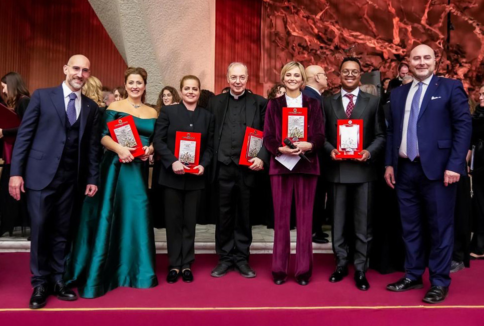 Alla fine dell’incontro il maestro Michele Affidato, orafo del Vaticano, insieme al figlio Antonio hanno consegnato al Santo Padre un bassorilievo in argento raffigurante la celebre “Resurrezione” di Pericle Fazzini, che svetta all’interno dell’Aula Paolo VI. Opere che sono state commissionate e realizzate anche per la Direttrice d’Orchestra Speranza Scappucci, per il M° Mons. Marco Frisina, per il M° Ciro Visco, per il soprano Maria Grazia Schiavo, il tenore Levy Segkapane e l’Orchestra e il Coro del Teatro dell’opera di Roma. Creazioni consegnate nella serata durante il concerto svoltosi nell’Aula Paolo VI. Si consolida, dunque, sempre di più il legame tra la Santa Sede e Michele Affidato che, nel corso degli anni, è stato ricevuto più volte dagli ultimi tre Pontefici. Molte sue opere di arte sacra, realizzate per chiese e autorità religiose, sono state benedette da Papa Giovanni Paolo II, Papa Benedetto XVI e da Papa Francesco. Per Papa Benedetto e Papa Francesco ha anche realizzato per entrambi un razionale con lo Stemma Papale, e opere commissionate da vari enti civili e religiosi, per farne dono ai Pontefici, divenute patrimonio artistico della Santa Sede.