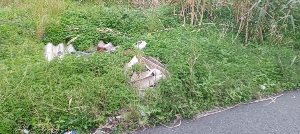 Reggio, lunga distesa di rifiuti (ed eternit) invade una strada di periferia – FOTO E VIDEO