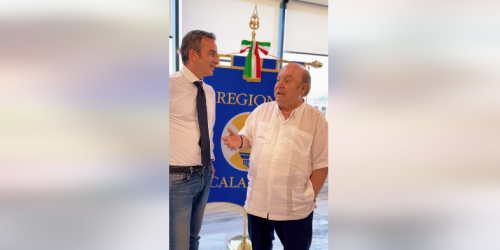 L’attore saluta Occhiuto e propone una fiction «che farebbe vedere meglio la Calabria». Con stretta di mano finale