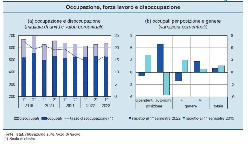 «Qualcosa si è mosso. La Calabria nel corso del 2023 ha registrato un miglioramento rispetto all’anno precedente, con un aumento del tasso di occupazione e una diminuzione della disoccupazione. Secondo i dati del Sistema informativo sulle statistiche del lavoro, il tasso di occupazione nei primi sei mesi del 2023 ha raggiunto il 43,5%, lo 0,9% in più rispetto allo stesso periodo del 2022. Il tasso di disoccupazione, invece, è sceso al 14,4%, dal 15,3% del 2022. Questi dati sono in linea con quelli del Mezzogiorno, dove il tasso di occupazione è stato del 46,9% e il tasso di disoccupazione del 13,6%, e con quelli del valore nazionale, dove il tasso di occupazione è stato del 51,6% e il tasso di disoccupazione del 12,8%. Ma c’è anche da rilevare che il miglioramento osservato nell’ultimo biennio nei tassi di occupazione e disoccupazione è dovuto tuttavia anche alla contrazione della popolazione attiva, che riflette sia il mancato recupero nei tassi di partecipazione al mercato del lavoro osservati, prima della pandemia, ma soprattutto al calo demografico in atto. Ciò rafforza dunque l’importanza di realizzare pienamente gli interventi di politica attiva previsti pure nel Pnrr, volti a favorire una maggiore e migliore partecipazione al mercato del lavoro».