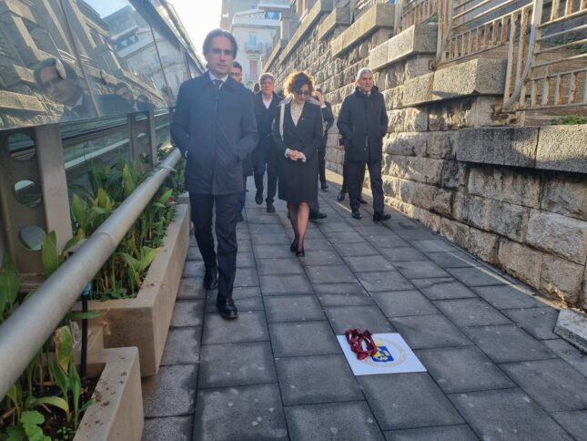 REGGIO CALABRIA La Giornata della memoria celebrata da Comune e Città metropolitana di Reggio Calabria con la scopertura in via Giudecca, da parte del sindaco Giuseppe Falcomatà, di una “pietra di inciampo” per le vittime della Shoah. Una cerimonia istituzionale, nelle adiacenze del tapis roulant, nel tratto compreso tra il Corso Garibaldi ed il Corso Matteotti, dove la pietra è stata collocata: un luogo centrale per la città.