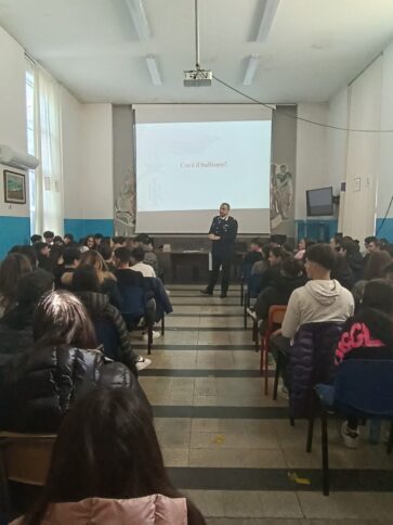 Sono stati quindi illustrati gli illeciti più comuni, quali le percosse, le lesioni, le minacce, il furto, l’estorsione ed i danneggiamenti, nonché gli atti persecutori; una particolare attenzione è stata rivolta alla rete internet ed ai telefoni cellulari, approfondendo le tematiche della diffamazione e della diffusione di video ed immagini a contenuto sessualmente esplicito. Ai ragazzi, inoltre, è stato ricordato come gli insegnanti siano pubblici ufficiali, sottolineando crimini quali l’oltraggio a pubblico ufficiale, la minaccia e la resistenza. Al di là dell’aspetto sanzionatorio, ai giovani alunni è stato illustrato come poter aiutare una vittima di bullismo, ricordando che anche il bullo è, di per sé, una vittima, necessitando anch’egli di aiuto e di un percorso rieducativo. Infine, ai ragazzi è stato ricordato come si chiamano le forze dell’ordine ma anche altri servizi, quali il numero di pubblica utilità 114, dedicato all’infanzia, ed il numero 19696 dell’ormai famoso telefono azzurro. Gli alunni sono intervenuti con domande, esperienze personali e propri punti di vista, mostrando particolare attenzione sul tema. Nel corso dei tre seminari, hanno partecipato, in totale, circa 300 scolari. Gli incontri, rientranti nel più ampio progetto della Cultura della Legalità, come di consueto, non si limiteranno alla specifica occasione ma verranno riproposti nel futuro, abbracciando le tematiche più sentite all’interno degli istituti scolastici, dal rispetto del codice della strada, agli stupefacenti, alla violenza sulle donne e sulle cosiddette fasce deboli.