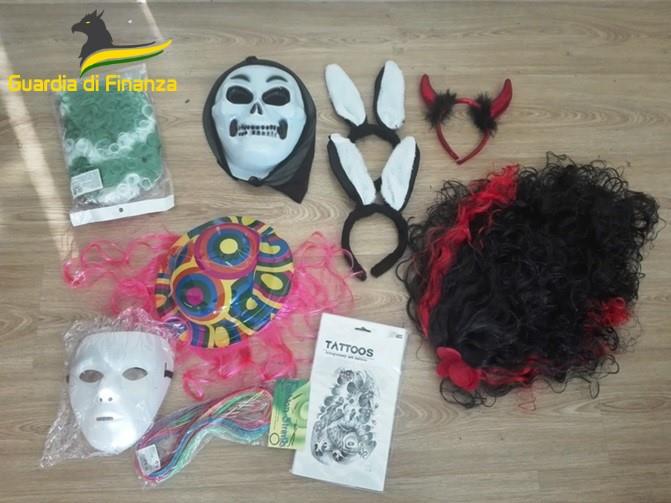 Sotto la lente 2 esercizi commerciali. Tra la merce sequestrata figurano maschere di Carnevale e altre decorazioni in tema
