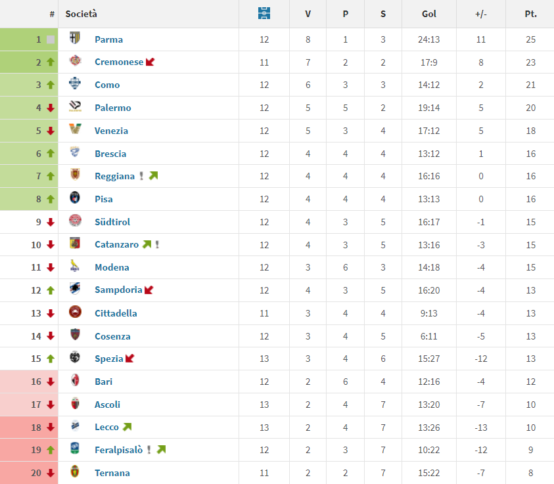 Parma sempre in vetta. Per i giallorossi 4 successi esterni, 3 per i rossoblù