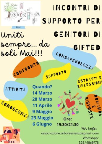 Ma cos’è la plusdotazione? I bambini plusdotati o gifted children (e qui il riferimento è al dono del talento) hanno un altissimo potenziale, e non si parla solo di intelligenza cognitiva, ma di processi di ragionamento superiori alla media, alte competenze linguistiche, sorprendente profondità e sensibilità emotiva, forte curiosità, svariati interessi, anche per argomenti particolari o di nicchia, spiccata immaginazione e facilità di apprendimento. Il loro pensiero viene definito “arborescente” (da qui il nome dato all’associazione), un’immagine molto poetica che ricorda una pianta piena di rami e nuove gemme: a partire da un punto si snoda una rete di pensieri e ogni idea ne genera un’altra.