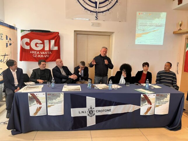 CROTONE «La causa principale di quello che accade nel Mediterraneo è del neocolonialismo e di chi obbliga le persone a intraprendere questo viaggio, siamo noi i Paesi occidentali con i nostri privilegi le nostre ricchezze ad obbligare quelle persone a intraprendere dei viaggi, ma non sono loro i produttori delle armi o chi va a saccheggiare i territori». Lo ha detto Mimmo Lucano, già sindaco di Riace, intervenendo all’iniziativa “Noi non dimentichiamo” promossa dalla Cgil insieme ad Arci Crotone, Agorà Kroton, Anpi, Baobab, Kroton Community, Prociv Arci Isola di Capo Rizzuto, Orizzonti Nuovi a pochi giorni dall’anniversario del naufragio di Steccato di Cutro nel quale morirono 94 persone tra cui 35 minori.