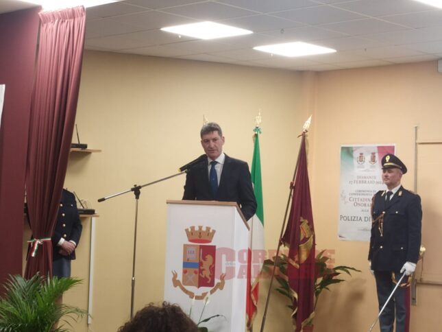 Durante la cerimonia è stata consegnata la cittadinanza onoraria alla polizia di stato, alla presenza del numero uno nazionale Vittorio Pisani