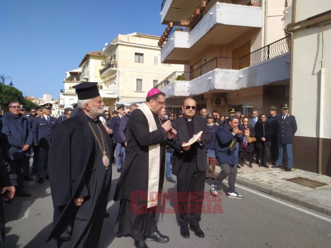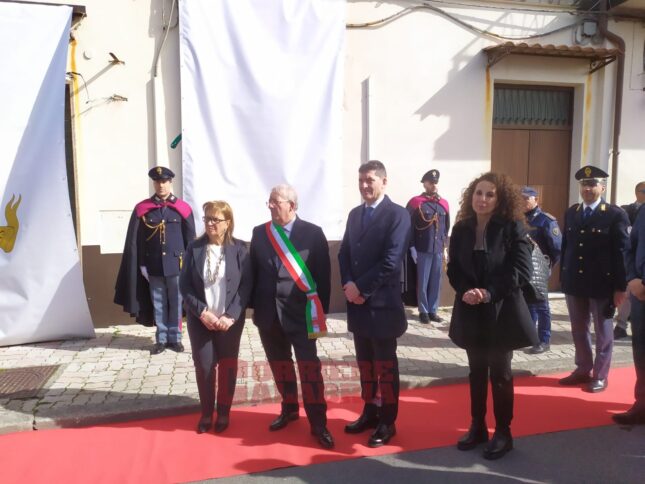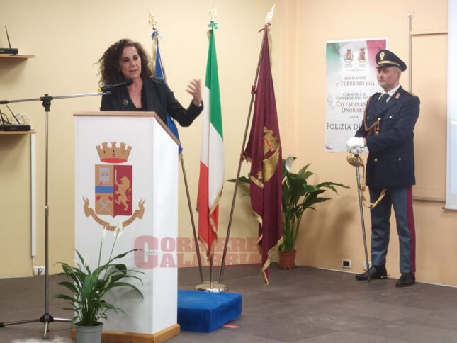 DIAMANTE Il poliziotto Angelo De Fiore era «sensibile e coraggioso, il contrario dell’indifferenza. Era mosso dal prendersi cura, I care, che è il contrario del me ne frego fascista. Il suo è un esempio e il murale scoperto oggi a Diamante trasmette memoria». Questo il passaggio più toccante del messaggio che la senatrice a vita Liliana Segre (Diamante è stato il primo comune italiano a conferirle la cittadinanza onoraria) ha inviato in occasione della cerimonia di consegna della cittadinanza onoraria alla polizia di stato, alla presenza del numero uno nazionale Vittorio Pisani. «Questa nomina – ha scherzato il sindaco di Diamante, Ernesto Magorno – è una delle poche cose giuste fatte da questo governo», poi si è commosso leggendo la formula con cui si è chiusa la cerimonia all’Iss della cittadina dell’alto Tirreno cosentino. In prima fila, seduti dopo l’inaugurazione del murale sul lungomare, opera dell’ispettore della stradale di Cosenza Luigi Perenz e dell’artista Angela Panetta, i presidenti della Regione e della Provincia Occhiuto e Succurro, la prefetta Ciaramella e il questore Cannizzaro, la sottosegretaria Wanda Ferro, Lucia De Fiore e mons. Stefano Rega, vescovo di San Marco Argentano-Scalea che poco prima aveva benedetto l’opera d’arte di 6 metri per 8 intitolata “Omaggio alla libertà” in ricordo del Giusto tra le Nazioni nato a Rota Greca che, da poliziotto dell’ufficio stranieri della questura di Roma durante l’occupazione nazista, salvò decine e decine di ebrei.