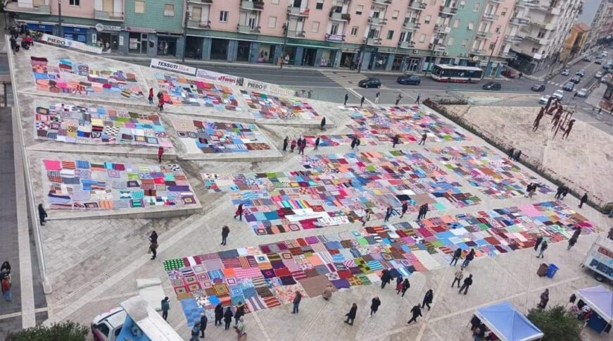 COSENZA Una piazza Bilotti colorata, solare, invasa di oltre 1.500 coperte (per la precisione 1.692) realizzate in circa un anno dalle volontarie e dai volontari di tutta Italia della Terra di Piero, l’associazione di volontariato dal 2011 impegnata nel sociale con opere di solidarietà. È questa l’immagine che si è presentata stamattina ai cosentini che hanno raggiunto il centro cittadino. L’iniziativa fa parte del progetto “Infibulazero” e il suo obiettivo è quello di sensibilizzare sul tema dell’infibulazione, una pratica disumana “che ancora colpisce e devasta, nel fisico e nella psiche, tantissime giovani donne” e che consiste nell’asportazione totale o parziale dei genitali esterni femminili.