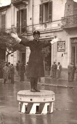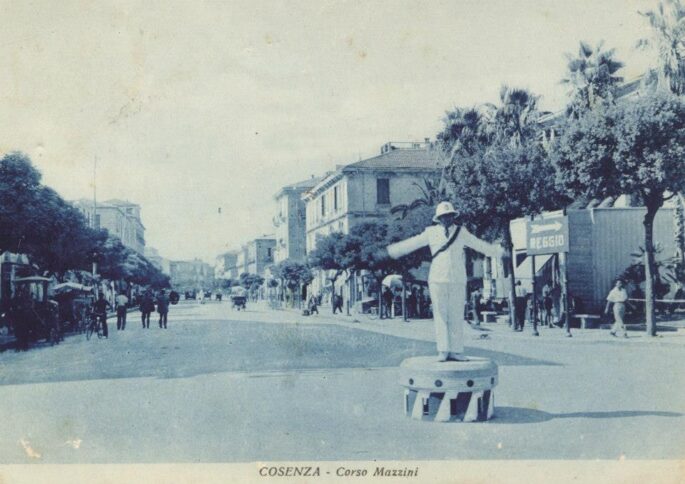 E dire che c’è stato un tempo in cui Cosenza vantava il pizzardone alla Alberto Sordi: posto su un cilindro di cemento agli incroci allora più trafficati della città (corso Mazzini, viale Trieste, via Sertorio Quattromani), negli anni ’50 indirizzava il flusso delle (poche) auto in transito. Negli anni ’60 del boom, le auto aumentano, quel punto di osservazione si depotenzia in una rotatoria ante litteram per poi sparire, mentre il vigile che dirige il traffico viene sostituito dai semafori. La fine del XX secolo porta con sé la graduale pedonalizzazione del corso centrale mentre le auto continuano a proliferare, i posti auto a non bastare e i vigili a scarseggiare.