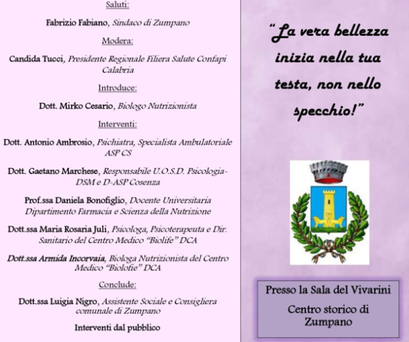 Disturbi alimentari, a Zumpano il 15 marzo dibattito informativo