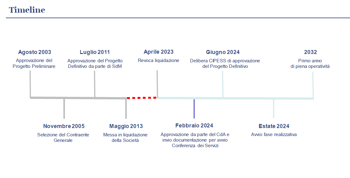 Si prevede dunque, come già detto, un avvio della fase realizzativa entro l’estate 2024 e il 2032 come «primo anno di piena operatività dell’opera».