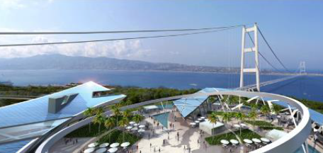Il Centro Direzionale Calabria sorgerà in località Piale, a Villa San Giovanni, sarà adiacente al blocco di ancoraggio della torre del ponte a Cannitello, sarà un complesso multifunzionale e ospiterà attività connesse alla gestione dell’opera.