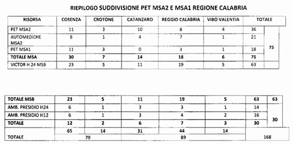 Nell’ultima delibera, inoltre, l’Asp di Cosenza – Azienda Zero «intende definire la tipologia delle risorse di soccorso (MSA 1 mezzo di soccorso avanzato con infermiere e autista a bordo, MSA 2 mezzo di soccorso avanzato con medico, infermiere e autista a bordo), nonché all’eventuale distribuzione territoriale delle articolazioni territoriali di base di supporto al Sistema 118 (MSB), affidate anche, previe le opportune procedure previste dalle normative vigenti, al Terzo Settore e denominate “VICTOR”»: