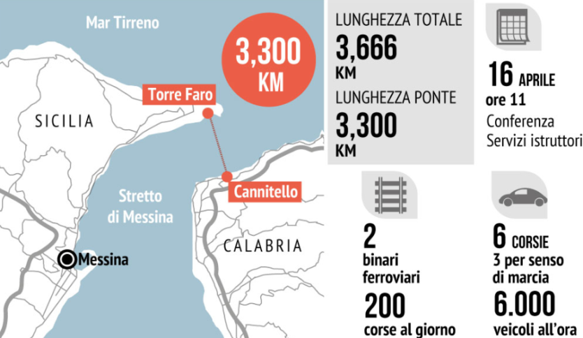 «L’avvio della Conferenza di servizi per il prossimo 16 aprile – ha commentato l’Amministratore delegato della Stretto di Messina, Pietro Ciucci – come comunicato oggi dal Ministero delle infrastrutture e dei trasporti, rappresenta un ulteriore concreto passo avanti nell’ambito dell’iter approvativo volto alla realizzazione del ponte sullo Stretto di Messina. Altrettanto importante è stata la comunicazione del Ministero dell’ambiente e della sicurezza energetica che, nei giorni scorsi, ha dichiarato la “procedibilità” per l’avvio della valutazione degli elaborati ambientali. Come programmato e comunicato la convocazione della Conferenza è un atto conseguente all’approvazione da parte del Consiglio di Amministrazione della Stretto di Messina dell’aggiornamento del progetto definitivo dell’opera e alla contestuale consegna degli elaborati progettuali ai ministeri e alle Autorità competenti». Sempre nei prossimi giorni sarà pubblicato sui quotidiani nazionali e territoriali di Sicilia e Calabria l’Avviso di avvio del procedimento volto all’apposizione del vincolo preordinato all’esproprio, propedeutico alla dichiarazione di Pubblica Utilità che sarà sancita con l’approvazione del progetto definitivo del ponte sullo Stretto da parte del CIPESS. «Questa fase intermedia, legata alla pubblicazione dell’Avviso ha spiegato Ciucci – consentirà a tutti gli interessati di prendere visione della documentazione progettuale relativa al piano degli espropri e formulare eventuali osservazioni. In tale contesto la società Stretto di Messina aprirà “Sportelli informativi” sia a Messina che a Villa San Giovanni, in spazi dedicati messi a disposizione dai rispettivi comuni, per fornire il supporto necessario per l’analisi della documentazione».