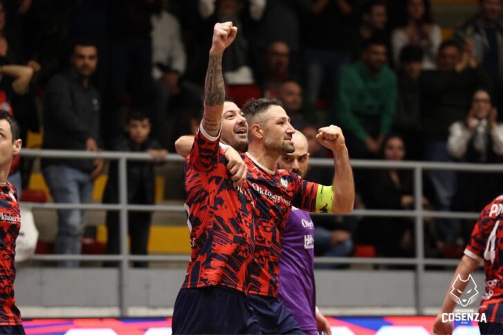 COSENZA Non si sbaglia a dire che oggi la Pirossigeno Cosenza, nel momento clou della stagione, con una salvezza da conquistare, ha disputato la miglior partita dell’anno. 8-4 il risultato finale con cui i lupi sconfiggono una Fortitudo Pomezia in piena corsa per i playoff e mettono un altro tassello verso la permanenza in Serie A. Irresistibile Carlitos, mattatore di giornata con una tripletta. Doppiette per Pelezinho e Titon. A segno nel finale del match anche l’estremo difensore rossoblù Leonardo Del Ferraro. Con i 3 punti odierni i lupi agganciano a quota 30 punti l’Active Network e, in virtù del vantaggio acquisito negli scontri diretti, escono momentaneamente dalla griglia playout.