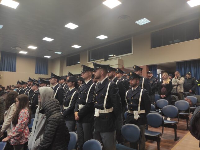 VIBO VALENTIA Una cerimonia “limitata” dall’incessante pioggia, che non ha consentito l’uso del cortile della Scuola di Polizia. Ma il maltempo non ha fermato i festeggiamenti per i 172 anni dalla nascita del corpo di Polizia di Stato. La festa è andata avanti all’interno dell’auditorium alla presenza delle autorità vibonesi, tra questi il procuratore di Vibo Camillo Falvo, il prefetto Giovanni Paolo Grieco, il comandante provinciale dei Carabinieri Luca Toti, il presidente della provincia Corrado L’Andolina e alcuni tra i sindaci vibonesi. Presente anche il vescovo della diocesi di Mileto Attilio Nostro e i principali vertici delle forze dell’ordine vibonesi. A fare gli onori di casa il neoarrivato Questore Rodolfo Ruperti, insediatosi ieri alla guida della Polizia vibonese dopo una personale assenza lavorativa da Vibo di 17 anni. «Un’emozione indescrivibile farlo qui dove ho iniziato a lavorare» afferma a margine della cerimonia. «Oggi ho rivisto tante facce, tanti volti che mi ricordano momenti indimenticabili del mio percorso professionale».