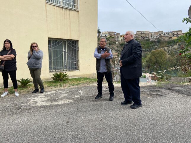 Questa frana ha causato anche diversi crolli. L’ultimo è del 25 novembre 2023, a crollare è il muro a ridosso della Chiesa di San Bartolomeo. «La causa non è la pioggia – dice Don Franco Romano, Parroco del quartiere – ma il dissesto idrogeologico del Cozzo Pantasima. Tutta questa zona, su cui sono state costruite queste case e la Chiesa di San Bartolomeo, galleggia su tanta acqua». Proprio Don Franco, in questi anni, ha lanciato più volte l’allarme, facendo appello ripetutamente agli amministratori affinché prendessero in mano la situazione, che aggiunge: «Tutti sanno di questa situazione. Lo sanno i sindaci che si sono succeduti, lo sanno consiglieri provinciali, consiglieri di opposizione e di maggioranza, quelli della Protezione Civile, tecnici del comune di Corigliano-Rossano. Hanno promesso che sarebbero venuti qui a fare qualcosa ma ancora non ho visto nulla».