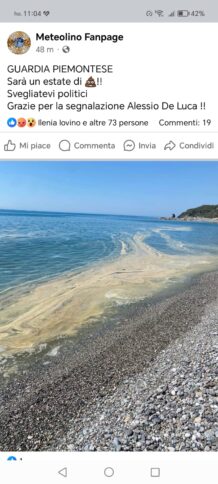 COSENZA Dalle previsioni settimanali che preannunciano in Calabria tempo instabile e un abbassamento delle temperature («Fuori gli indumenti più pesanti…sarà una fase molto fresca…che ormai avevamo dimenticato») a quelle relative alla prossima estate, con tanto di provocazione. La star social Natalino Bosco (in arte “Meteolino” con quasi 26 mila follower su facebook), oggi ha postato sul suo profilo alcune foto inviategli da un utente in cui si vede il mare di Guardia Piemontese, nel Cosentino, ricoperto da una chiazza scura e melmosa. Un liquido non bene identificato che ha portato lo stesso “Meteolino” a ipotizzare che la prossima sarà un’estate difficile (anche se, come si può vedere dalla foto in basso, il termine usato da Bosco è molto più colorito). «Svegliatevi politici», ha aggiunto poi “Meteolino”. Un’ora dopo, però spazio anche a un’altra segnalazione, questa volta con tanto di video romantico del mare di Rossano e commento al seguito: «Uno spettacolo di colori». (redazione@corrierecal.it)
