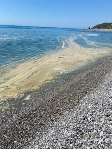 Mare sporco a Guardia Piemontese, chiazza scura e melmosa arrivata fino a riva – FOTO