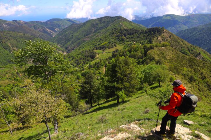 Suoni di campanacci. Intervallati dal silenzio. Vento da nord, teso, a raffiche. La terra, l’erba, le fronde degli alberi sono intinte nel verde tenero della primavera. Querce, aceri, biancospini in fiore, orchidee. Dal cielo, pioggia. Esitiamo in un tempo sospeso: fra l’ombra delle nubi e la luce che si fa strada ad est. Come monaci errabondi ci avviamo sul sentiero. Avvolti nelle giacche invernali. Intimiditi dal furore panico che ci sovrasta. Ancora incerti se rinunciare o meno. Ma ad ogni passo il sole espande la sua forza invitta. Straccia le nubi. Percorre le montagne: a ondate, che scivolano rapide sulle cime, le pendici, le valli. All’orizzonte la barriera di nubi abbacinanti s’infrange, come un esercito in resa.