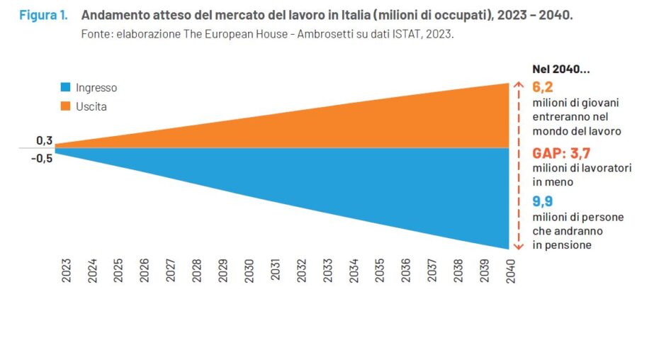 Alcuni mesi addietro lo studio curato da “The Europen House-Ambrosetti” e Microsoft, aveva posto in evidenza che l’IA generativa potrebbe incrementare la produttività e contrastare così gli effetti avversi del calo demografico. «Nel nostro Paese, l’IA Generativa – si legge nel rapporto – può diventare la chiave per mantenere alto il livello di produttività e benessere in un contesto di crescente scarsità del talento e di generale invecchiamento della popolazione. L’Italia entro il 2040 perderà infatti circa 3.7 milioni di occupati: un numero di lavoratori che, con gli attuali livelli di produttività, contribuiscono alla produzione di circa 267,8 miliardi di Valore Aggiunto. Le nuove tecnologie consentiranno di mantenere invariato lo stesso livello di benessere economico». Così la sfida vera per interpretare al meglio questa rivoluzione resta quella di cavalcare l’innovazione attrezzandosi al meglio.