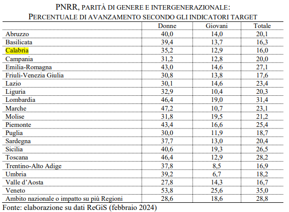 Il Pnrr per ridurre i divari di genere e generazionali, in affanno gli enti locali calabresi