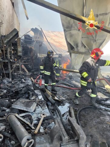 CROTONE Squadre dei vigili del fuoco del Comando di Crotone sono impegnate dalle ore 8.40 circa di stamattina nel comune di Petilia Policastro per un incendio in un capannone. Interessata dal rogo una struttura in laterizi e copertura in lamierato adibito a deposito di legname e mezzi agricoli. Sul posto vigili del fuoco del locale distaccamento con supporto di autobotti per il rifornimento idrico ed Autoscala della sede centrale. Oltre 15 le unità impegnate a circoscrivere ed estinguere il rogo. A coordinare le operazioni di soccorso il funzionario del Comando IA Galluppo. A causa delle alte temperature parte della coperta del capannone è collassata senza danni a persone. Al termine delle operazioni di spegnimento saranno effettuati ulteriori accertamenti per risalire alle cause dell’incendio. Al momento nessuna ipotesi viene esclusa.