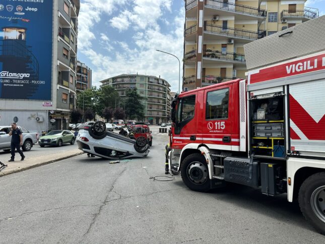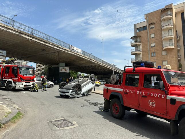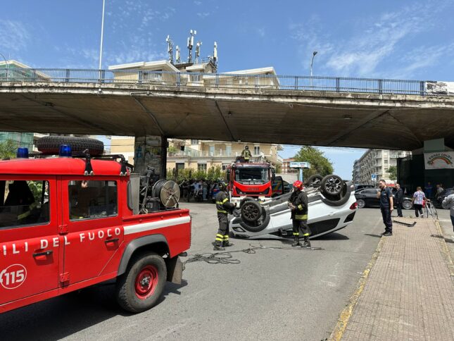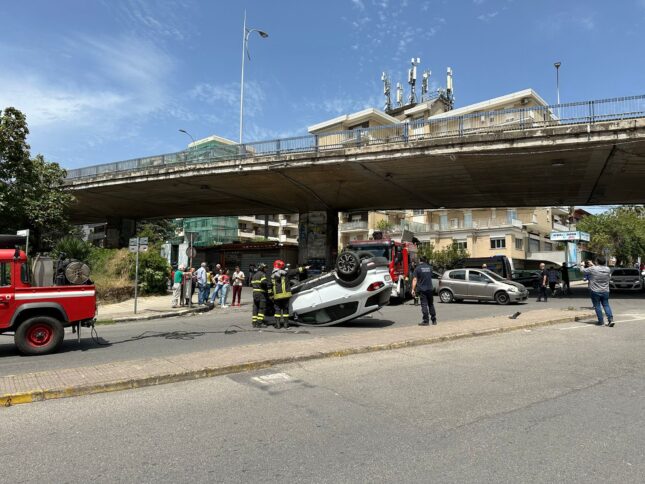 COSENZA Spettacolare incidente stradale questa mattina in pieno centro a Cosenza, sotto la sopraelevata, nei pressi di piazza Zumbini. Un’automobile con a bordo tre bambini e i genitori, per cause in corso di accertamento si è ribaltata proprio nel centro della corsia. Da quanto si è appreso nessuna delle persone a bordo avrebbe riportato gravi danni.
