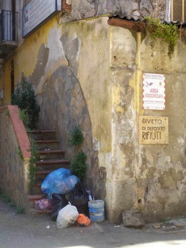 Appena superata via Monte Baldo, dove un mucchietto di munnizza accompagna il viandante nel suo tragitto verso uffici, bar e negozi, non resta che scegliere: svoltato l’angolo troverete sicuramente una mini discarica, ancora più odiosa per essere collocata a qualche metro dal Palazzo di città, ben più a ridosso di quella segnalata ieri mattina sulla strada che porta a piazza dei Bruzi.