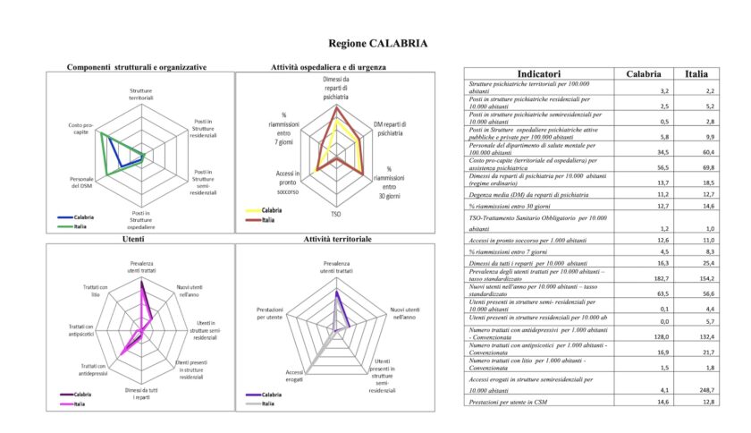 È dunque meritoria l’attività della dottoressa Volpentesta, del Centro di salute mentale di Cosenza e del dipartimento aziendale da cui esso dipende, in un contesto regionale ancora segnato da pesanti retaggi culturali e da errori politici e amministrativi del passato, talvolta marchiani e in parte per fortuna superati di recente. Prima del biennio della pandemia da Covid-19, 84 milioni di persone soffrivano di disturbi mentali, secondo le stime della Commissione europea. Sebbene quel periodo abbia aggravato i problemi di salute mentale, specie tra i giovani, altri eventi significativi stanno peggiorando la situazione; per esempio, la crisi climatica e l’invasione russa dell’Ucraina. Nel giugno dell’anno scorso, la Commissione europea ha riferito che il costo dell’immobilismo pubblico sulla salute mentale ammonta a 600 miliardi di euro all’anno. Riguardo ai dati della Calabria, il “Rapporto di salute mentale” del 2022 offre alcuni dati interessanti: le strutture psichiatriche territoriali sono 3,2 per 100mila abitanti, contro le 2,2 della media italiana; il costo pro capite per l’assistenza psichiatrica, sia territoriale che ospedaliera, è 56,5, contro 69,8 della media nazionale; i posti in strutture ospedaliere psichiatriche attive, pubbliche e private, sono 5,8, mentre 9,9 è il valore medio nazionale; gli utenti presenti in strutture residenziali per 10mila abitanti sono 0, contro i 5,7 delle altre regioni; i nuovi utenti nell’anno sono 63,5, contro i 56,6 della media nazionale; gli accessi erogati in strutture semiresidenziali per 10mila abitanti sono 4,1, contro i 248,7 della media nazionale; il numero dei pazienti trattati con antidepressivi, antipsicotici e litio è sempre più basso, nel territorio calabrese, rispetto alla media italiana. Ciò significa, in primo luogo, che occorre cambiare la cultura dominante in Calabria rispetto alla considerazione della patologia psichiatrica e che servono maggiori investimenti pubblici per prendere in carico, trattare e seguire i pazienti. (redazione@corrierecal.it)