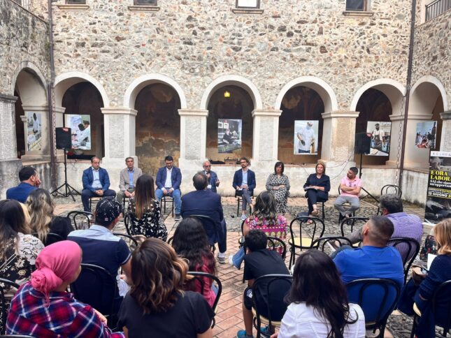 Nel bellissimo chiostro del Convento di San Francesco di Paola di località Pedace, si è tenuto ieri pomeriggio l’incontro, promosso dai Comuni di Casali del Manco e Celico, in collaborazione con il Centro di solidarietà Il Delfino, dal titolo “E ora Labora… SAI che siamo un’opportunità?”. Al centro dell’attenzione le politiche di accoglienza dei migranti ed il loro inserimento nel tessuto sociale, in particolare attraverso l’inclusione lavorativa. Presenti, infatti, numerosi migranti ospitatati, sia minori che interi nuclei familiari e in evidenza una mostra fotografica allestita nel chiostro, per documentare le esperienze di formazione professionale e di lavoro in alcune aziende del territorio. L’iniziativa, moderata dal giornalista Fabio Benincasa, si è aperta con i saluti istituzionali dei primi cittadini Francesca Pisani e Matteo Lettieri e del parroco di Pedace don Francesco Castiglione.