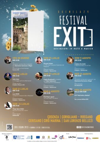 COSENZA La Calabria si prepara ad accogliere l’ottava edizione del festival “EXIT: Deviazioni in Arte e Musica”, un evento di rilievo nazionale che si distingue per la sua innovazione e capacità di attrarre pubblico e investimenti. Ideato e organizzato da Piano B, EXIT – cofinanziato negli anni dalla Regione Calabria – è oggi l’unico festival multidisciplinare ambito musica della provincia di Cosenza ad essere supportato dal 2020 dal Ministero della Cultura sul Fondo Unico dello Spettacolo. Un nuovo modo di vivere l’arte e la musica valorizzando i territori. EXIT è molto più di un festival: invita a scoprire nuove vie di fuga, nuove prospettive, a vivere secondo ritmi e dimensioni differenti. Il festival itinerante si è consolidato come importante attrattore culturale e forte strumento di marketing territoriale, richiamando così turisti e investimenti, ma soprattutto continua a valorizzare la ricca eredità artistica della Calabria.Caratteristica di EXIT è, infatti, la contaminazione a forte impatto emozionale del territorio: strutturato come un contenitore di azioni artistico-culturali diversificate, predilige come scenari, per tutti gli eventi, gli straordinari beni architettonici e ambientali della Calabria, proprio per incentivarne la promozione.