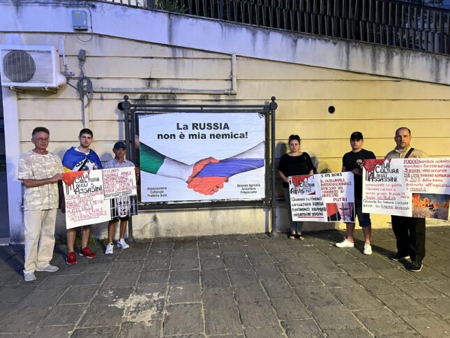 Intanto l’associazione “APS Svitanok” di Lamezia Terme, in una lettera ufficiale inviata al sindaco di Lamezia Terme, Paolo Mascaro, al Commissariato e alla Polizia locale ha chiesto la «verificazione di legalità dell’affissione di manifesti provocatori» e «stabilire se realmente l’associazione indicata e l’azienda agricola siano gli organizzatori». E scrivono ancora: «Queste pubblicazioni opprimono la dignità del popolo ucraino e di tutti i popoli che stanno accanto all’Ucraina, in particolare del popolo italiano e dell’intera leadership politica della Repubblica italiana». «Dopo tutte le uccisioni di massa di civili e bambini, la creazione di un disastro ecologico sulla larga scala (l’esplosione della centrale idroelettrica Kakhovskaya), l’impedimento ai soccorritori di salvare le persone nelle aree allagate dall’esplosione di una diga, rapimento di bambini ucraini, uccisione di prigionieri di guerra, il costante bombardamento di ospedali, istituti scolastici, infrastrutture civili, continue minacce di inizio conflitto militare con i paesi dell’Europa e della NATO, omicidi su commissione sul territorio dell’UE da parte di agenti russi e molti altri crimini commessi dalla Russia qualcuno si permette di fare questi manifestazioni???».