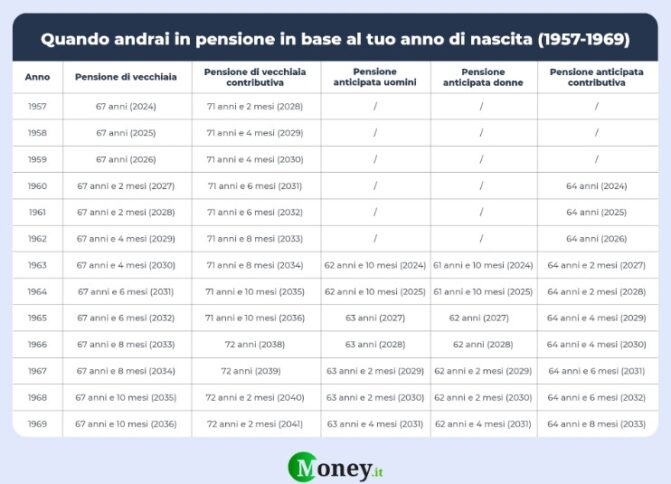 Quando vanno in pensione i nati tra il 1957 e il 1969 Fonte: Money.it