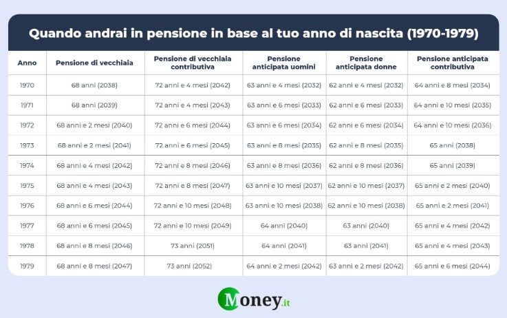 Quando vanno in pensione i nati tra il 1970 e il 1979 Fonte: Money.it