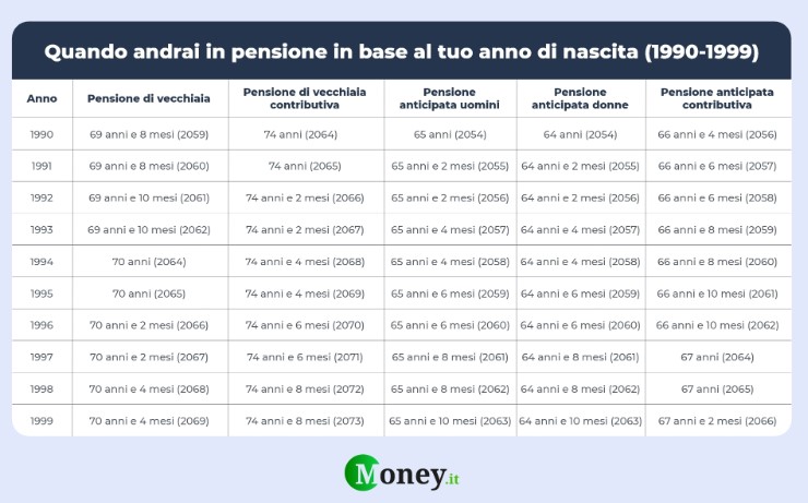 Quando vanno in pensione i nati tra il 1990 e il 1999 Fonte: Money.it