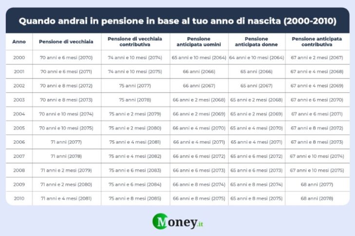 Quando vanno in pensione i nati tra il 2000 e il 2010 Fonte: Money.it