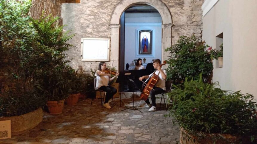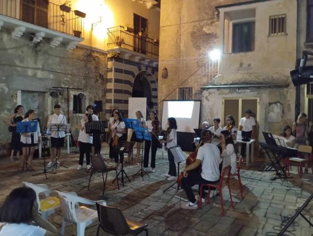 SAN LUCIDO Tre giorni di musica per socializzare e riappropriarsi di uno dei borghi più suggestivi del Tirreno cosentino: da un’idea di Giusi Malito, l’Associazione Trivultius Academy, col patrocinio del Comune di San Lucido, nell’ambito della Rassegna Turismo delle radici, ha proposto il “Laboratorio musica d’insieme con il Maestro Maurizio Dones” nei giorni 10, 11 e 12 luglio. Per la prima volta a San Lucido e grazie alla disponibilità del maestro, giovani musicisti calabresi hanno avuto la possibilità di ritrovarsi non solo per le meritate vacanze estive ma per creare, lavorare insieme e condividere un percorso musico-culturale mai sperimentato prima. L’obiettivo dell’incontro tra il direttore d’orchestra e compositore Maurizio Dones con musicisti in erba provenienti da realtà musicali e geografiche differenti, vuole essere l’occasione per darsi appuntamento iniziando così un nuovo cammino con esibizioni e condivisioni musicali. L’esperienza in gruppi di ragazzi, in particolare in ambito musicale, è di straordinaria importanza, innanzitutto da un punto di vista umano, perché è un momento di confronto che apre gli occhi e la mente, responsabilizza e richiede duttilità e sensibilità nel porsi in relazione. Durante i tre giorni c’è stata la possibilità di affinare e rafforzare la voglia di fare musica insieme mentre nella performance finale, ieri sera, i partecipanti al laboratorio hanno realizzato un percorso musicale tra i vicoli del centro storico che l’amministrazione comunale ha allestito per l’occasione: è così che per una sera gli slarghi del borgo si sono trasformati in quinte e palcoscenici naturali creando la magia della fruizione per tutti, appassionati e neofiti.