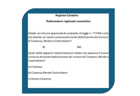 La proposta tra l’altro contiene anche il quesito da sottoporre ai cittadini dei tre Comuni coinvolti – Cosenza, Rende e Castrolibero – quesito così formulato: 1) «Volete voi che sia approvata la proposta di legge n. 177/XII e che sia istituito un nuovo comune derivante dalla fusione dei Comuni di Cosenza, Rende e Castrolibero?» 2) «Quali delle seguenti denominazioni volete che assuma il nuovo comune derivante dalla fusione dei comuni di Cosenza, Rende e Castrolibero? a) Cosenza, b) Cosenza Rende Castrolibero, c) Nuova Cosenza». Sul piano politico, ovviamente, si tratta di uno dei provvedimenti più importanti dell’intera legislatura, come dimostra il fatto che da mesi sulla fusione è in corso un aspro dibattito, tra favorevoli e contrari (anche bipartisan): da quanto finora emerso, nel centrosinistra ci sono anche segnali di apertura, e gli analisti sostengono che se si va incontro alla richiesta di prevedere l’entrata in vigore della legge nel 2026 e non nel 2025 non sarebbe escluso il voto favorevole del centrosinistra in Consiglio regionale. Per quanto riguarda la tempistica, il referendum potrebbe tenersi anche in autunno, tra settembre e ottobre. Ovviamente, ci sono anche fortissime resistenze territoriali: contrarietà alla fusione arrivano soprattutto dalle realtà di Rende e di Castrolibero. Si vedrà. Per il resto, all’ordine del giorno del Consiglio regionale del 26 luglio non ci sarà l’autonomia differenziata (come scritto qui) nonostante il tentativo dell’opposizione di “forzare” sul punto, mentre ci saranno alcune pratiche di bilancio, alcune mozioni e alcune interrogazioni. (a. c.)