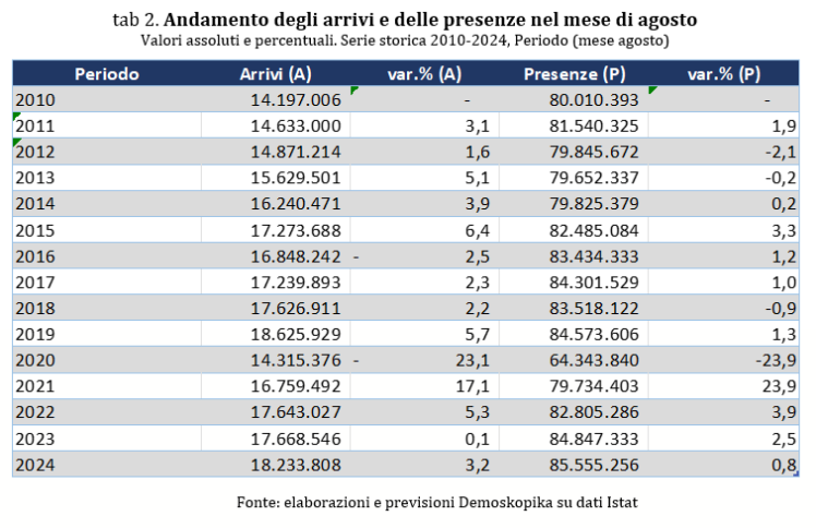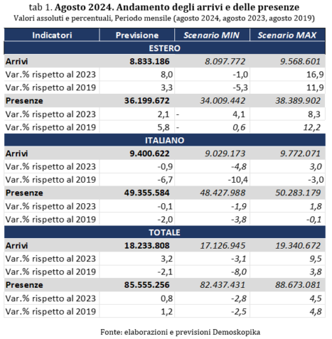 Previsioni: 85,6 milioni di presenze turistiche per agosto 2024. E l’incoming cresce dell’8%