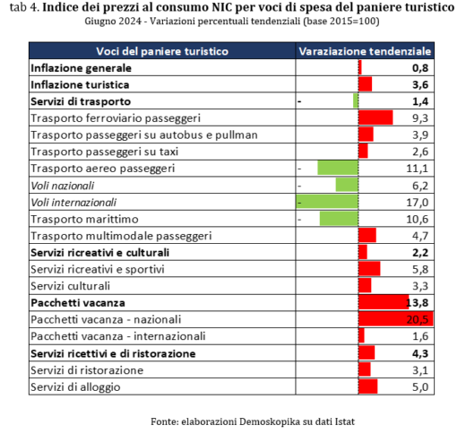 Inflazione turistica: a giugno +1,2% su mese, +3,6% su anno