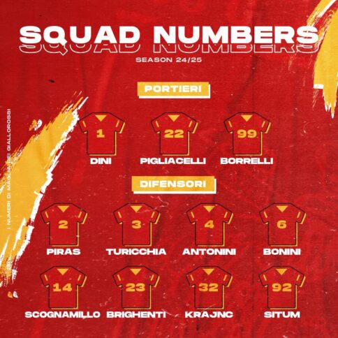Ieri, intanto, la società ha annunciato i numeri di maglia per la prossima stagione. Scontati il 9 per capitan Iemmello e il 10 per Petriccione, il nuovo portiere Pigliacelli avrà la numero 22, a Pittarello la 90. (redazione@corrierecal.it)